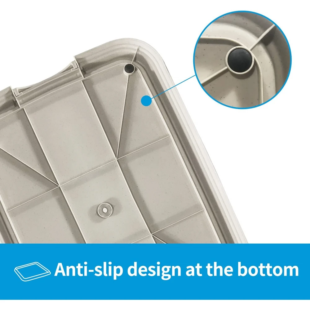 Αυτή η θήκη – βάση για πάνες παρέχει την καλύτερη προστασία δαπέδου από διαρροές. Κατάλληλο για πάνες 60x60cm. Το φορητό αυτό εκπαιδευτικό γιογιό εμποδίζει τον σκύλο σας να θρυμματίσει την πάνα εκπαίδευσης και εμποδίζει τα ούρα να ρέουν πάνω από την άκρη της πάνας. Τα ασφαλισμένα μάνταλα συγκρατούν τις πάνες εκπαίδευσης κατοικίδιων στη θέση τους και αποτρέπουν την ολίσθηση .Εύκολο στη χρήση: απλά ξεκλειδώστε, βάλτε την πάνα και κλειδώστε τη θήκη, είναι έτοιμη.