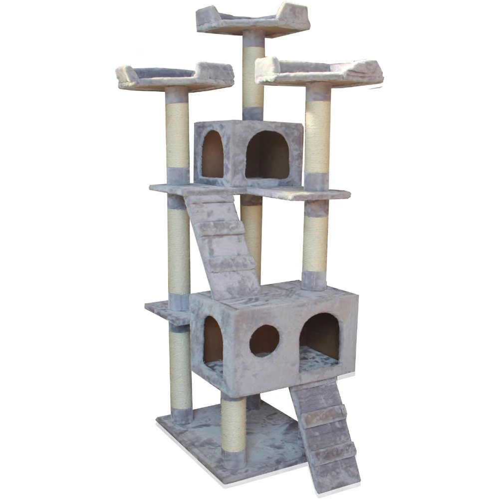 Ονυχοδρόμιο – Γατόδεντρο αναψυχής για γάτες με τρεις ορόφους, δύο φωλιές ξεκούρασης και κρεμαστά παιχνίδια.