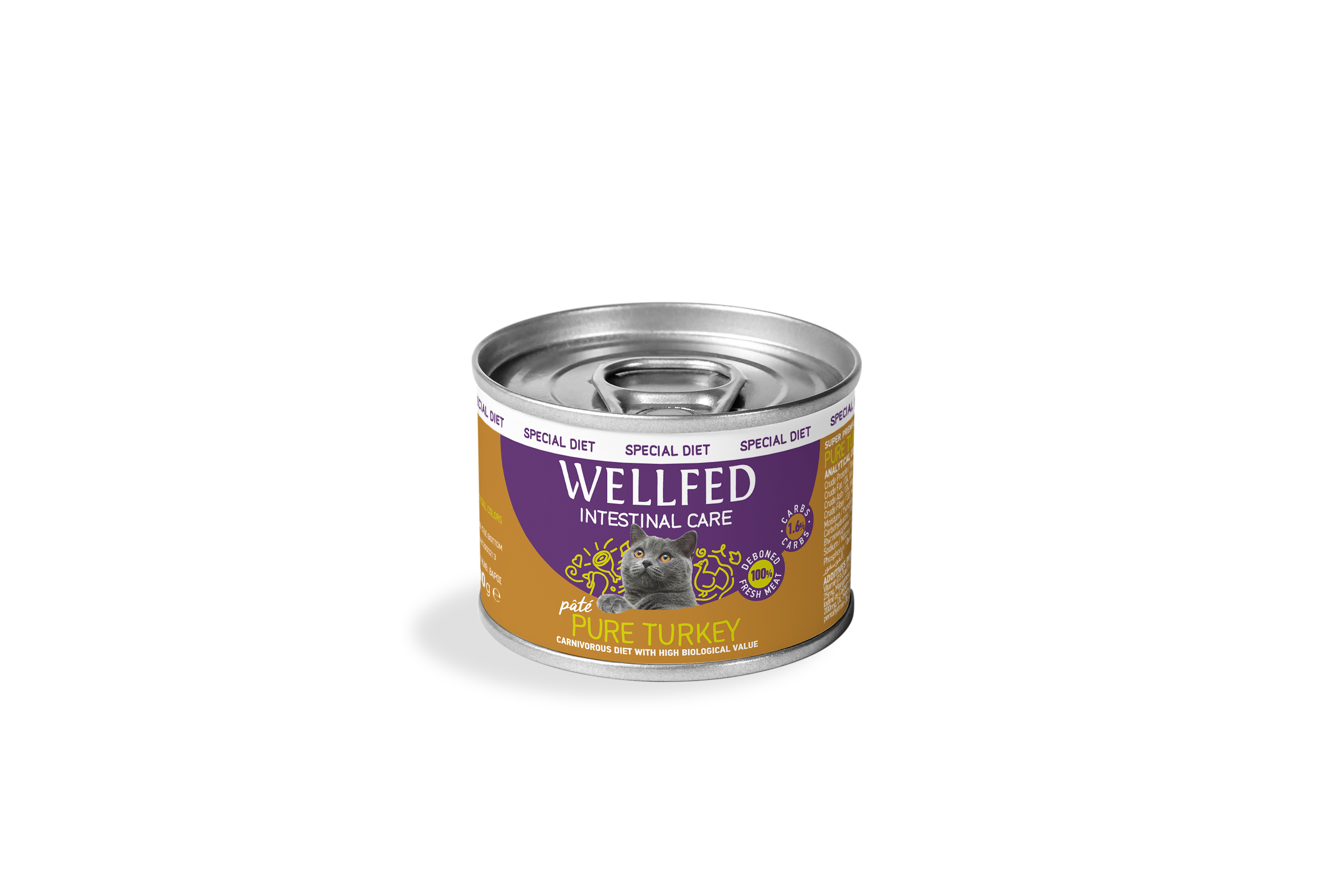 Πλήρες, ισορροπημένο γεύμα ανώτερης ποιότητας από 100% φρέσκια γαλοπούλα μαγειρεμένο στον ατμό με ελάχιστους υδατάνθρακες (2%) ρύζι που μαζί με την γαλοπούλα αποτελούν ένα εύπεπτο συνδυασμό για γάτες που έχουν δυσκολία στην πέψη και χρόνιες ή συχνές διάρροιες. Ενδείκνυται και ως μετεγχειρητική διατροφή.